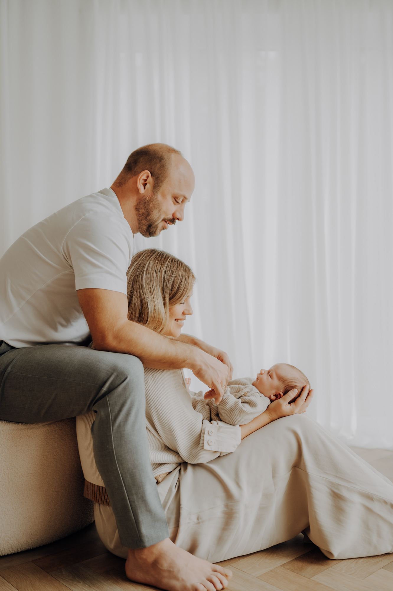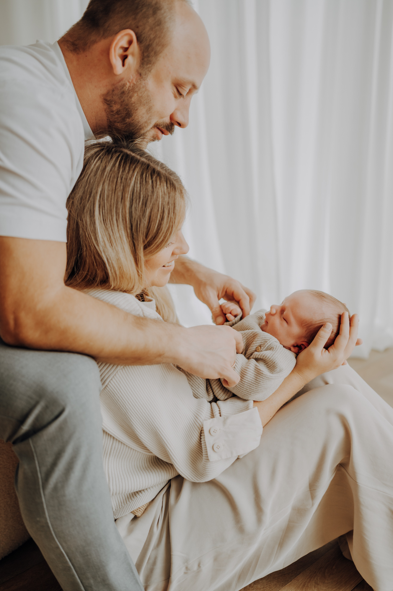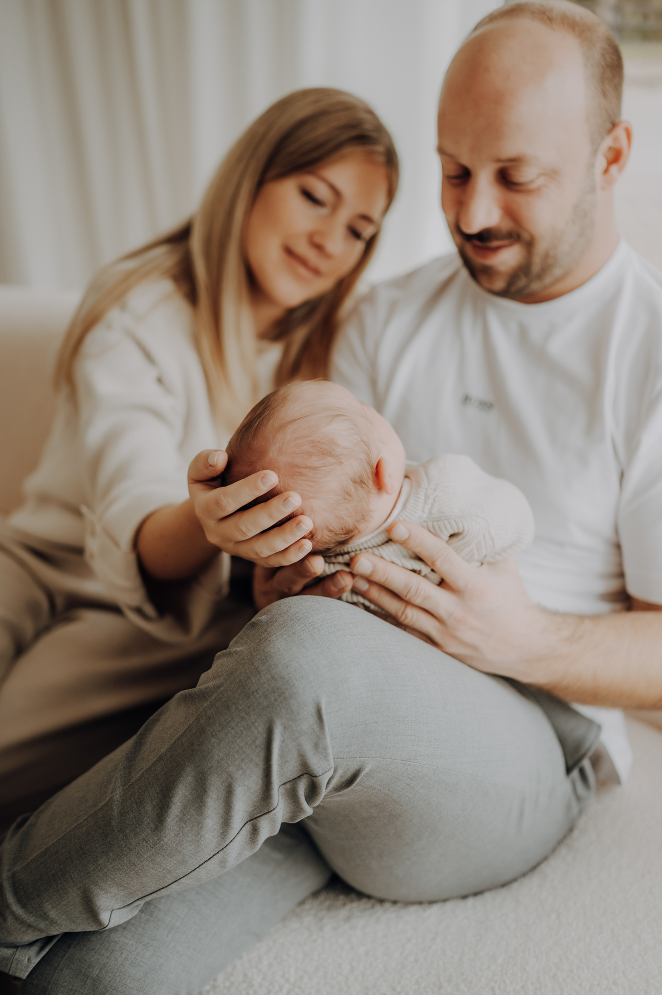 Die Atmosphäre bei einem Newborn-Shooting ist ruhig und behutsam. Kein Stress, kein Hektik – nur ihr als Familie. Ich nehme mir Zeit, die Momente einzufangen, in denen ihr euch im ganz eigenen Rhythmus als Familie zusammenfindet.